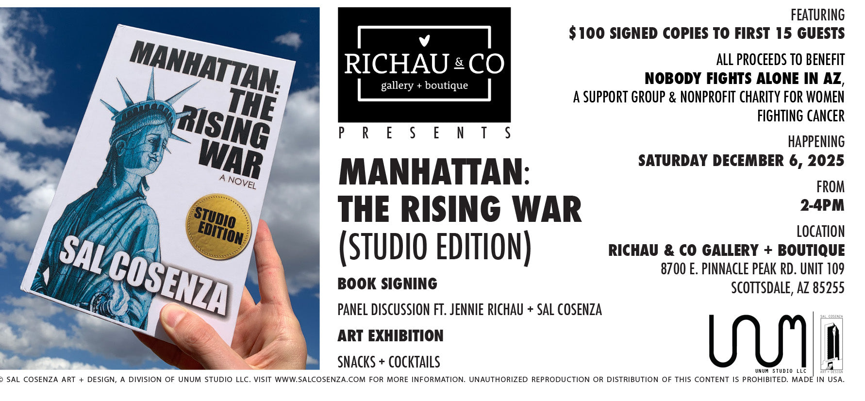 15 signed copies of the Studio Edition book are available for $100, with 100% of the proceeds donated to Nobody Fights Alone in AZ, a non-profit supporting women fighting cancer.