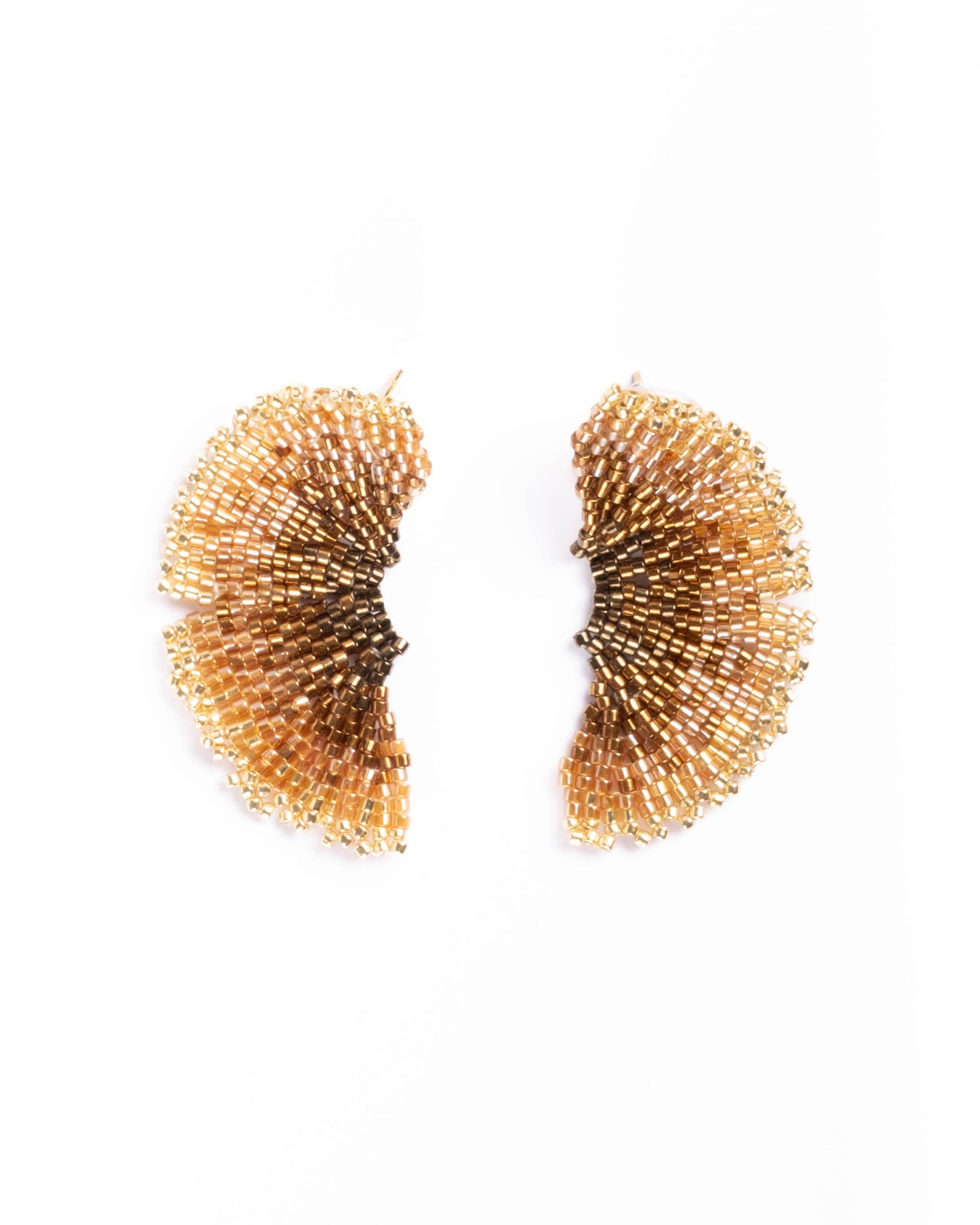 Beaded Handwoven Ginkgo Leaf Stud Earrings