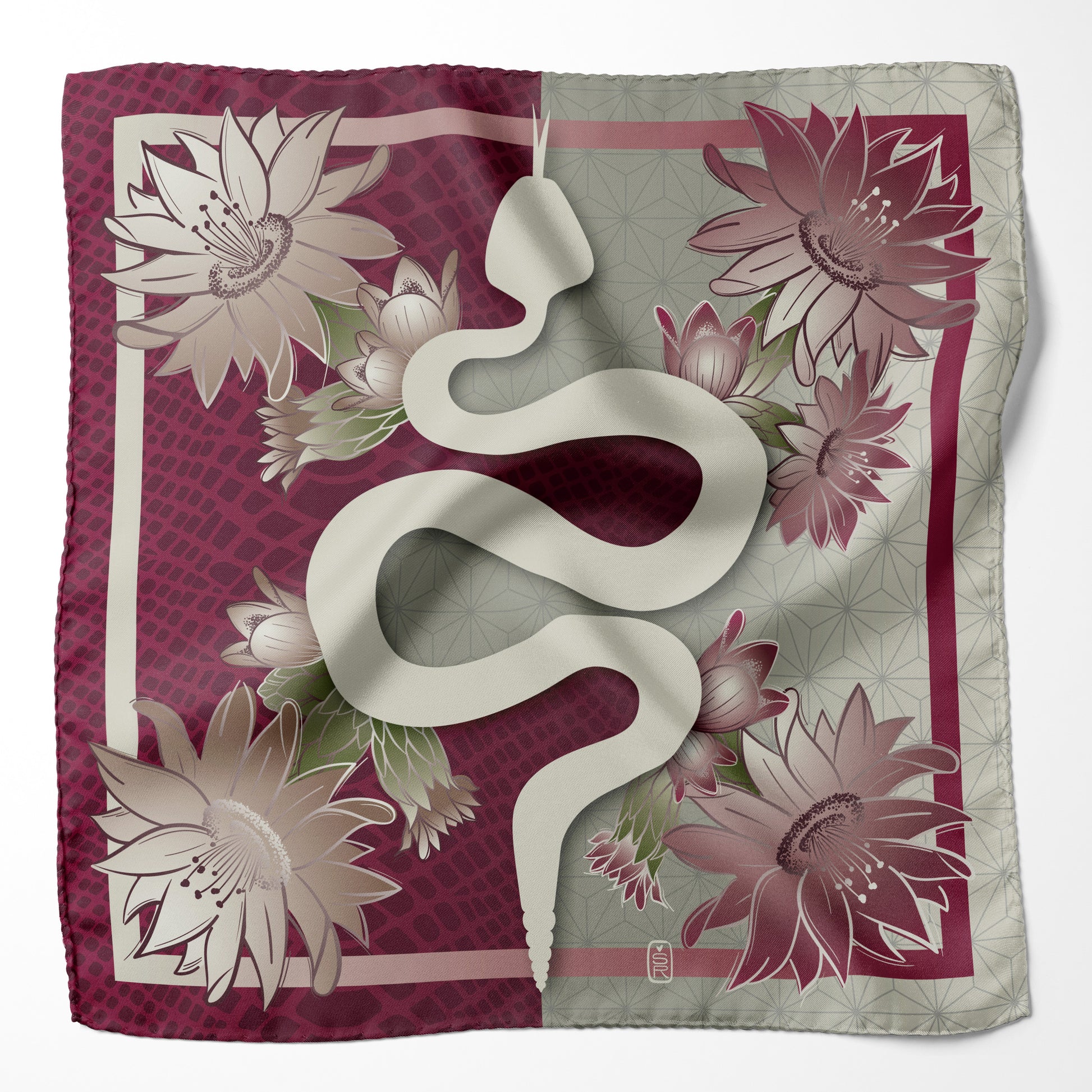 Our scarves feature double-sided printing on luxurious 16 momme silk twill from Italy. With it's stunning sheen, smooth texture and beautiful drape, you'll feel as incredible as you look.