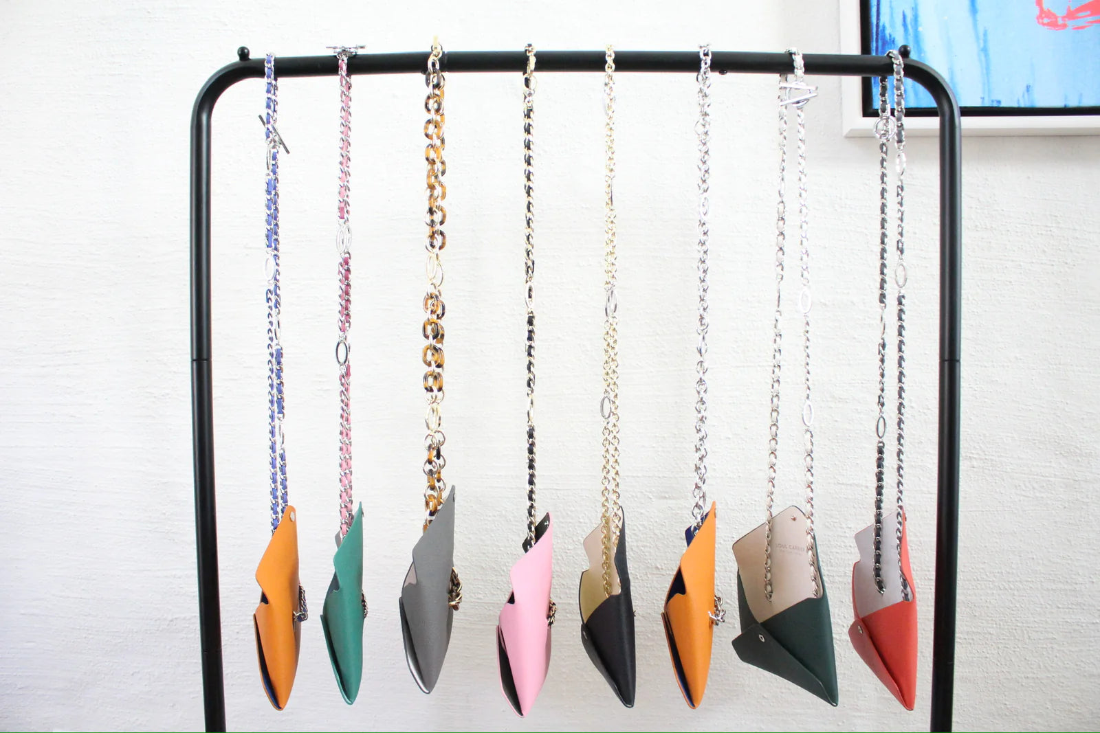 - Elevate the look with an optional chain to use as a shoulder or crossbody strap.